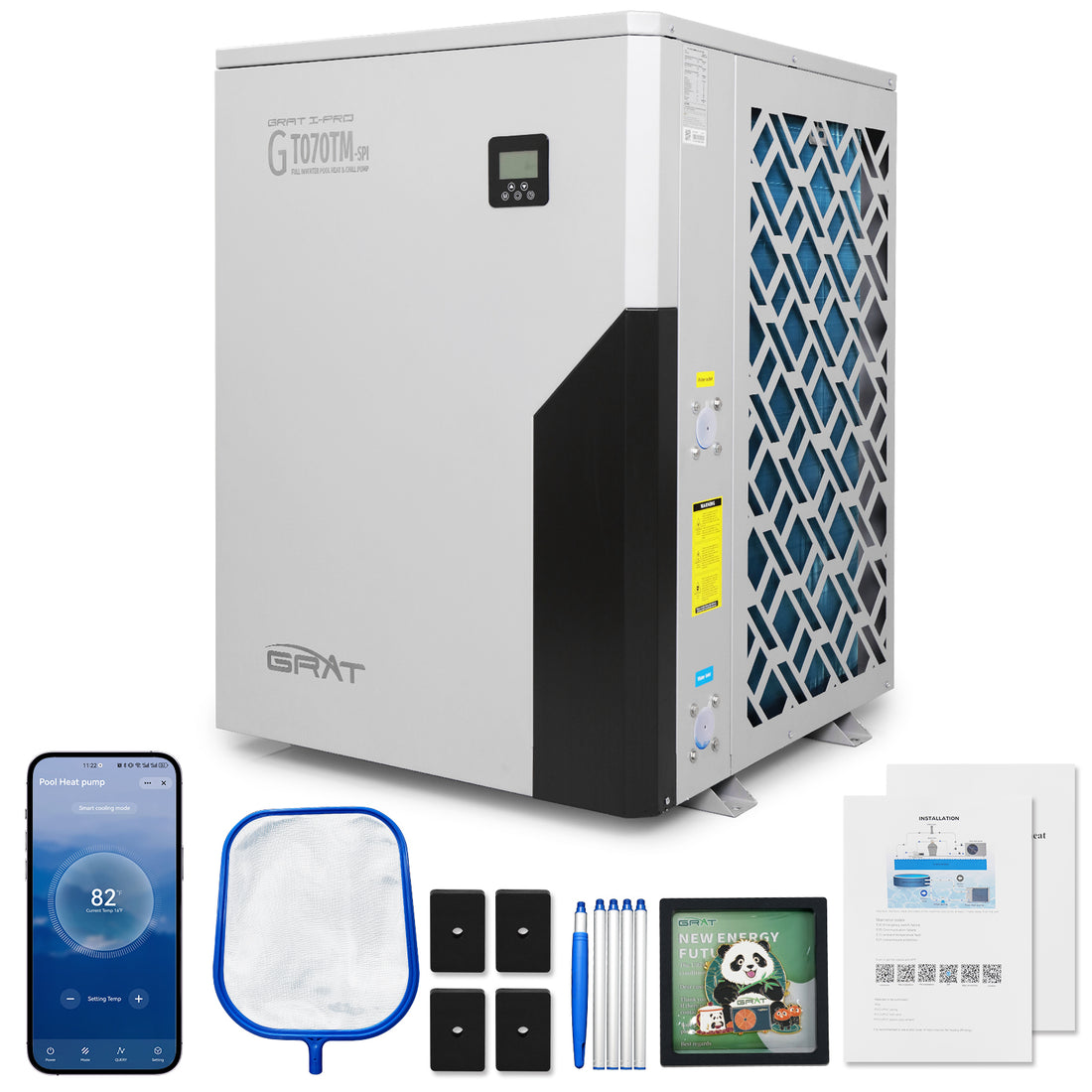Full Inverter Heat Pump for Hot Tub and Bath, 140,000BTU Swimming Pool Heater, 42000 Gallons, for Above Ground and In ground Pools, WiFi Capable Timer, Heating and Cooling, Defrosting, 220-240V