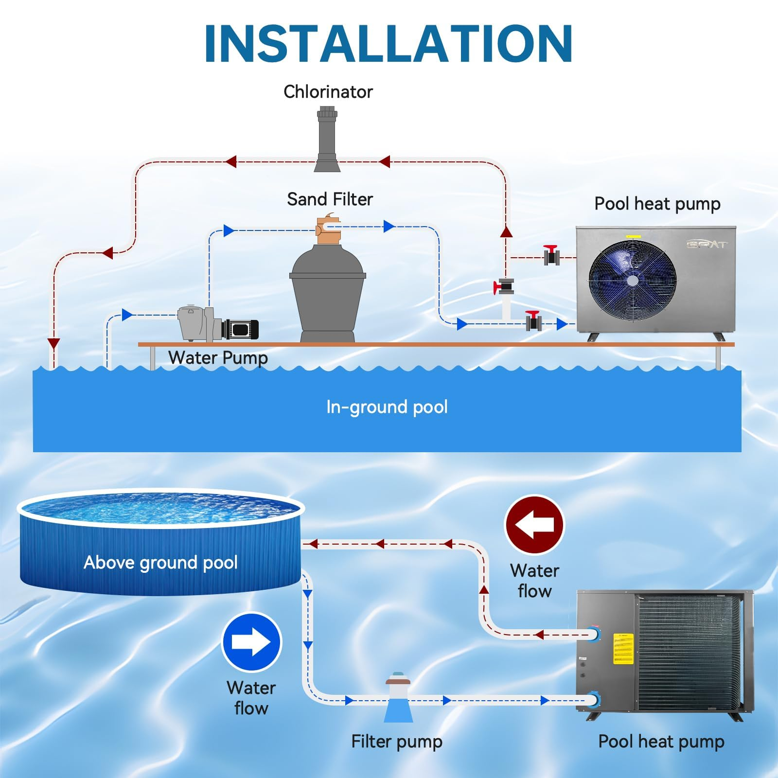 The 140,000 BTU Pool Heater is significantly more energy-efficient than gas heaters: